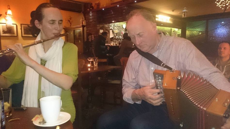 Easter Sun 27th March 2016. Áine Heslin and Pat Keating. Also at the seisiún were Niamh Casey, Tom Gorman and Matt Heslin. Myles Creek in Kilkee.