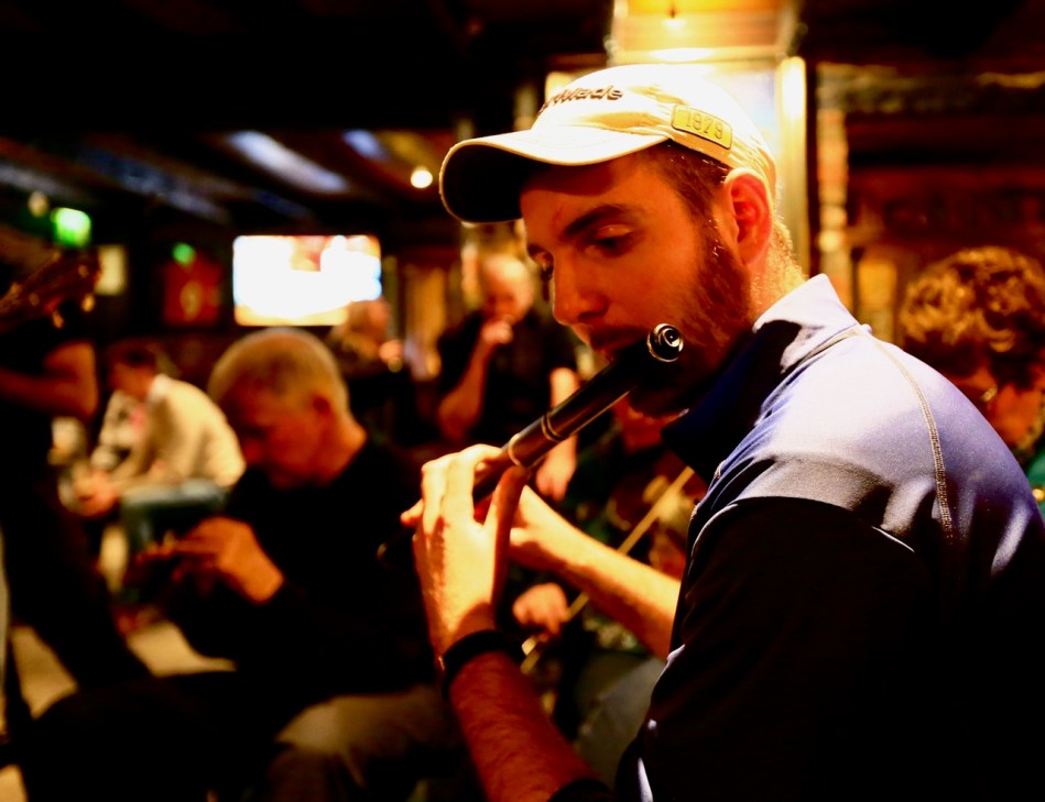 Adrian on flute with Howard on tinwhistle behind. Photo taken by Pat Keating.
